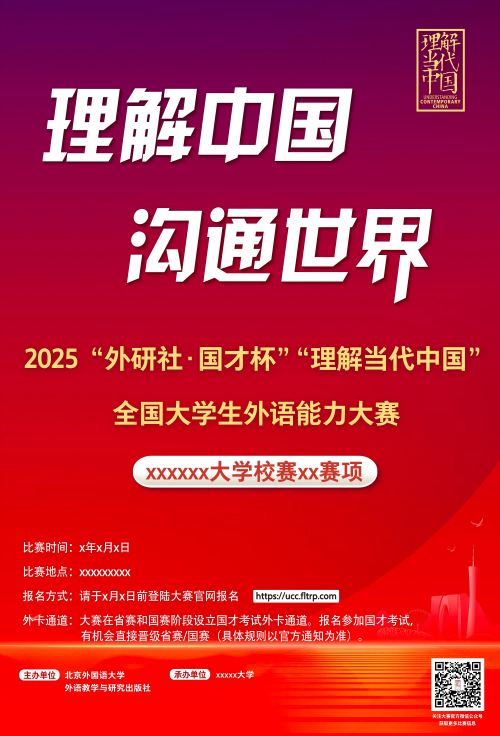 校赛背板、海报 | 2025“外研社·国才杯”“理解当代中国”全国大学生外语能力大赛校赛电子版物料下载